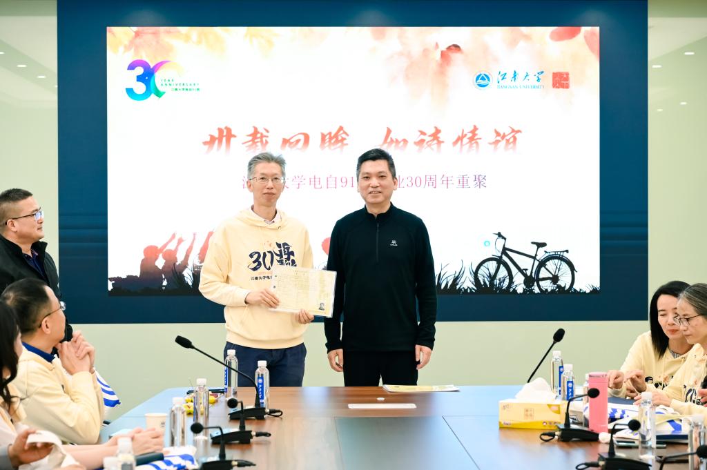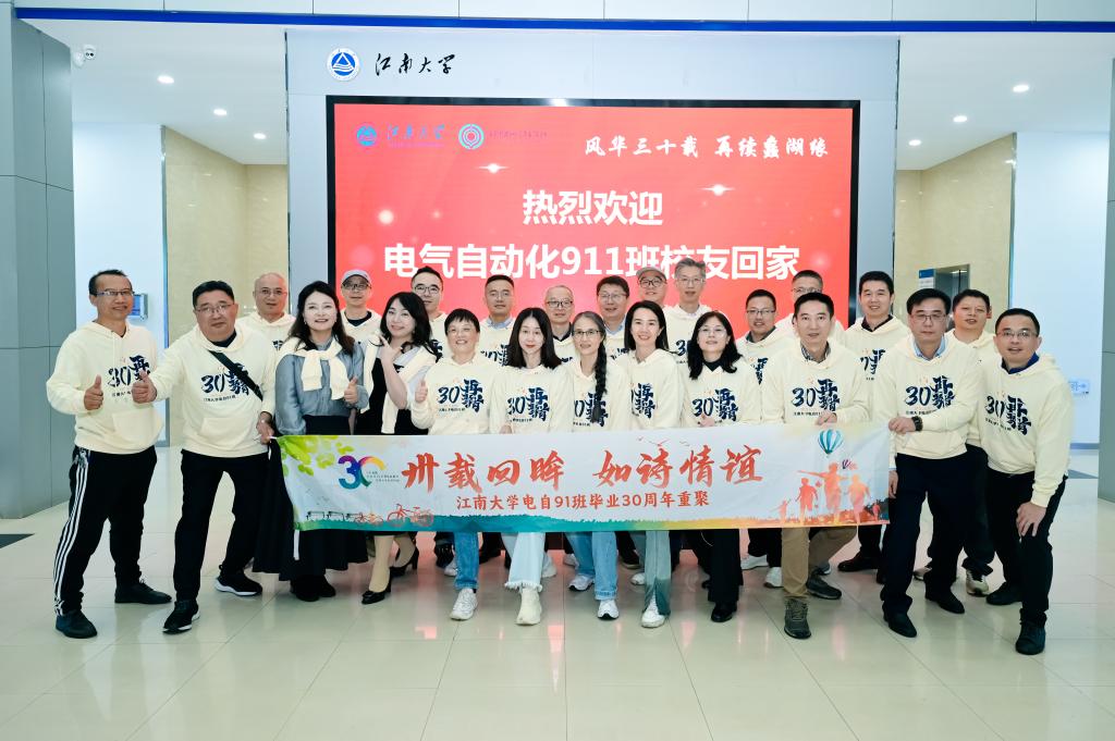 “卅载回眸,如诗情谊”。2025年11月7日,江南大学物联网工程学院喜迎全国各地的电气自动化911班校友返校,学院党委书记张华、办公室主任付少平热情接待了校友并出席班级毕业30周年班会。